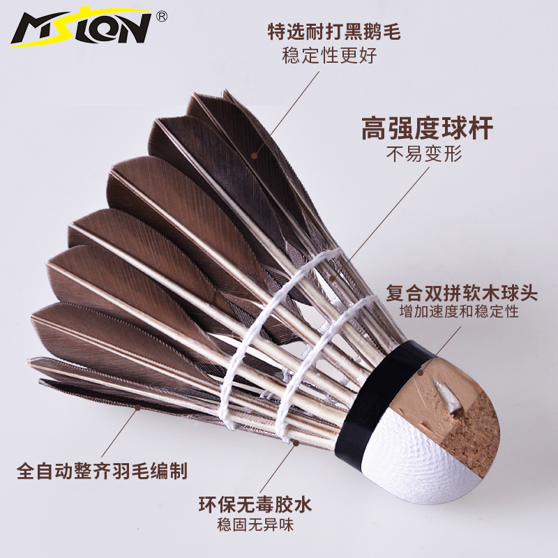 羽毛球鹅毛12只装 6耐打王白色黑色训练专业比赛耐打球夜光尼龙