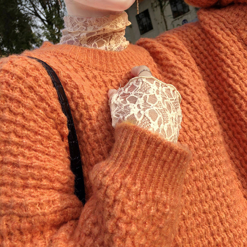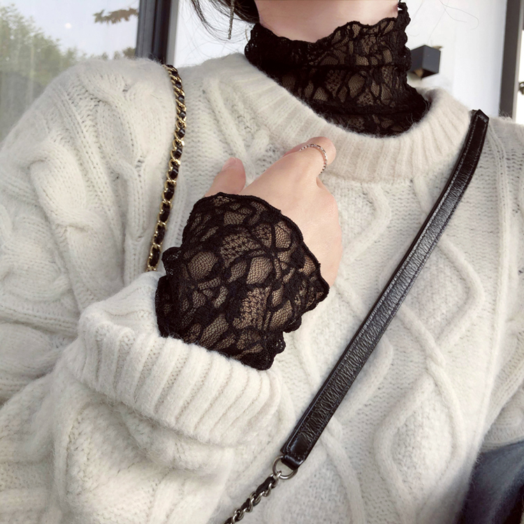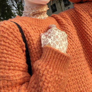 毛衣内搭网纱打底上衣搭配 白色洋气小衫 蕾丝打底衫 女秋冬2020新款