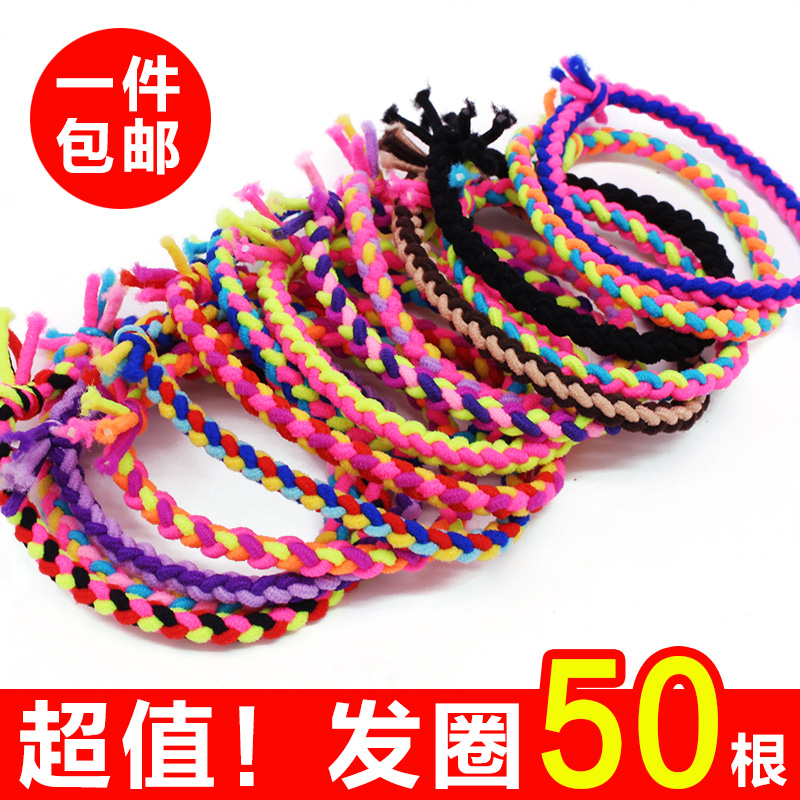 50根皮筋发绳头饰韩国可爱彩色高弹力麻花编织橡皮筋打结发圈头绳