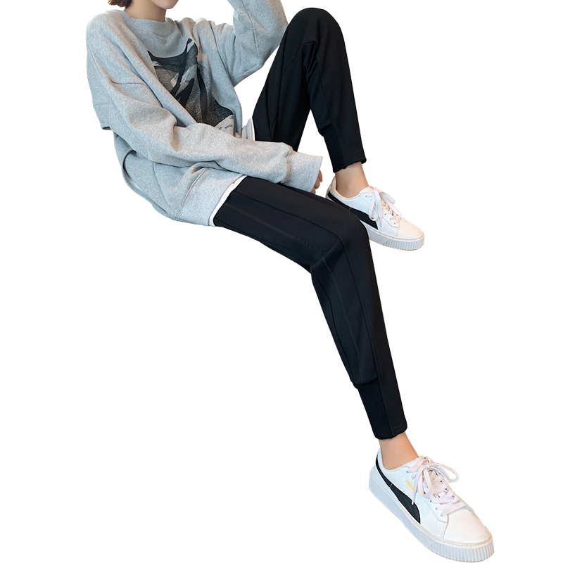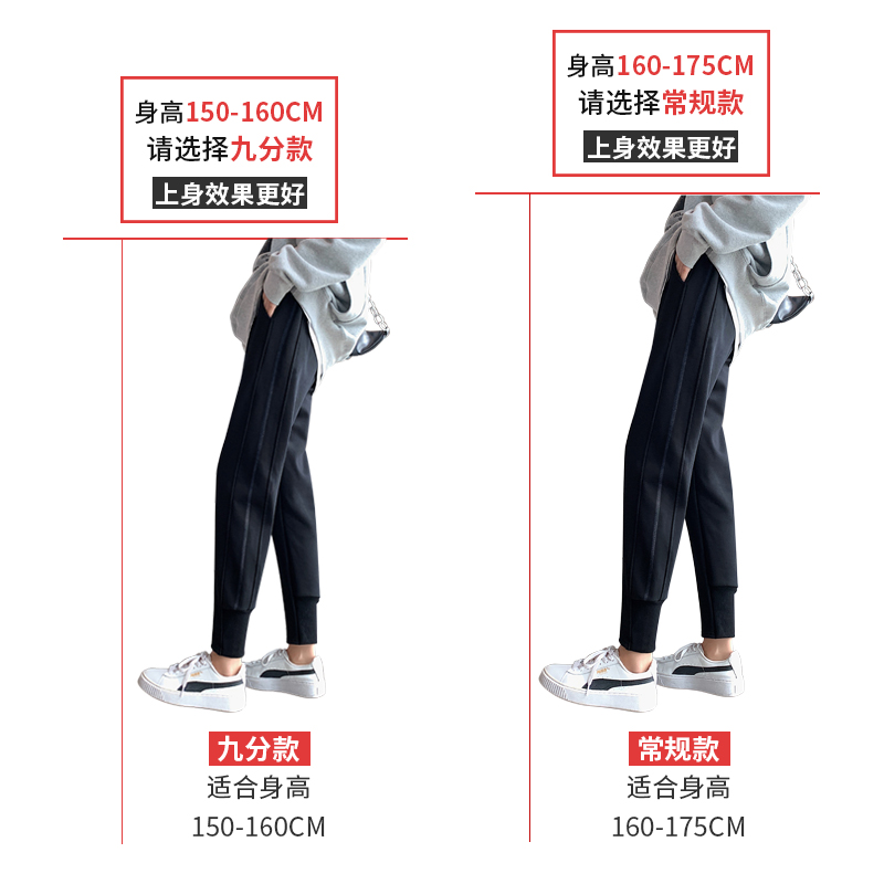 子 百搭外穿休闲长裤 加绒加厚运动裤 女宽松束脚秋冬黑色直筒哈伦裤