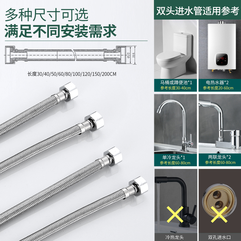 304不锈钢丝编织软管热水器冷热进水管高压防爆马桶连接管4分家用