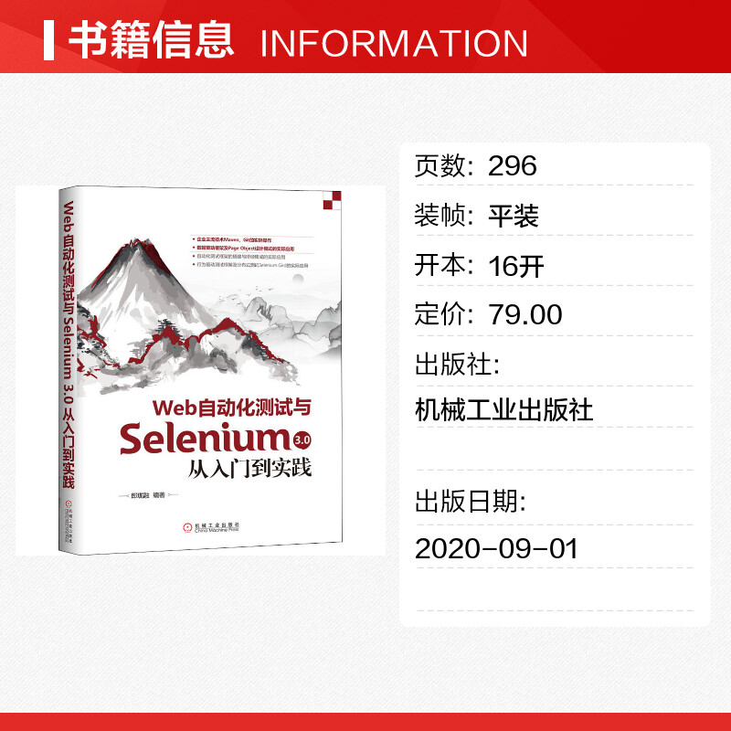 机械工业出版 Web自动化测试与Selenium3.0从入门到实践 新华书店旗舰店文轩官网 书籍 社 正版