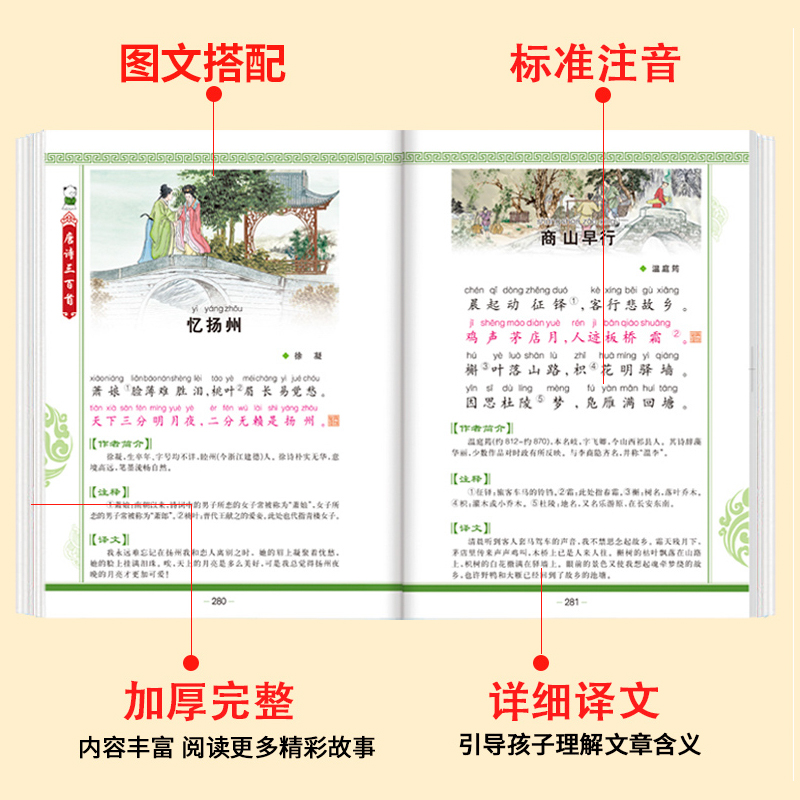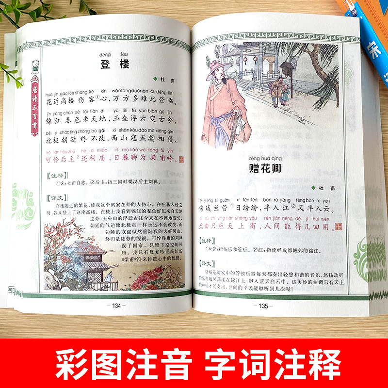 唐诗宋词三百首加厚完整版 儿童一二三年级课外阅读书籍6 古诗词彩图注音版 12岁幼儿早教启蒙必读绘本全集 小学生正版