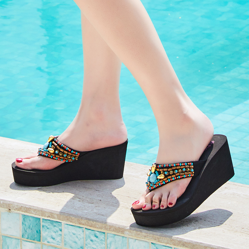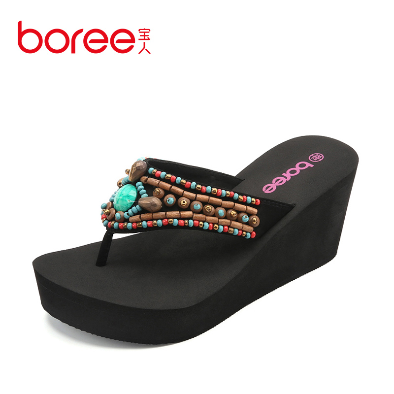 宝人拖鞋 厚底坡跟增高民族风海边沙滩凉拖 外穿夹脚人字拖女夏新款