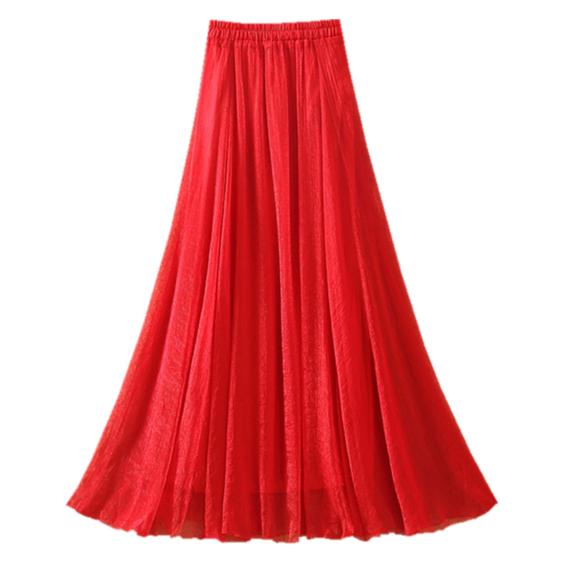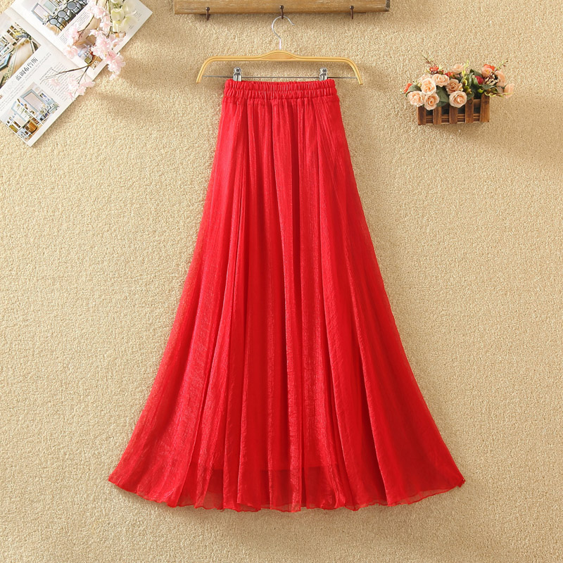 雪纺半身裙女夏高腰跳舞大摆裙舞蹈裙子中长款 沙滩裙a字网纱长裙