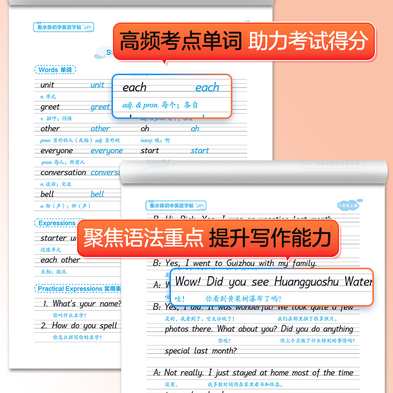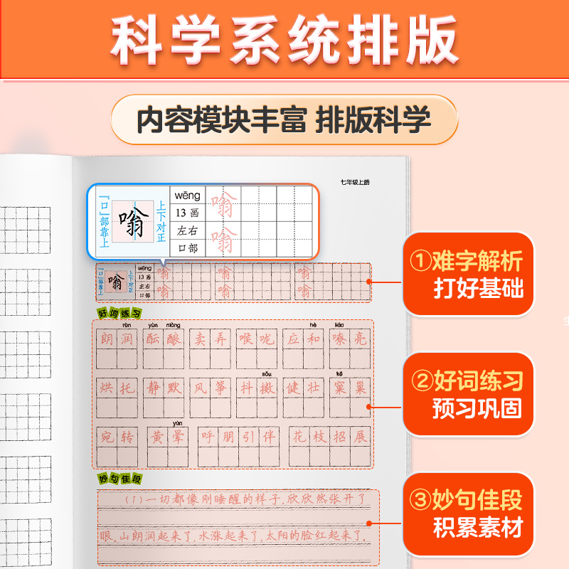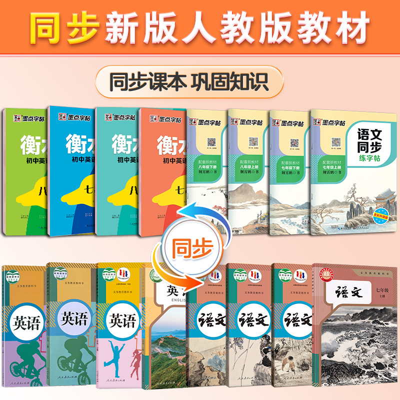 墨点字帖 七年级八年级下册上册练字帖初中生专用教材同步衡水体英语字帖初一初二正楷书硬笔书法本钢笔练字本 语文同步字帖人教版