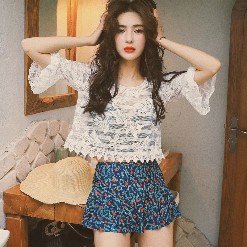 泳衣女ins风三件套小清新韩国分体网红款 遮肚显瘦 温泉比基尼罩衫