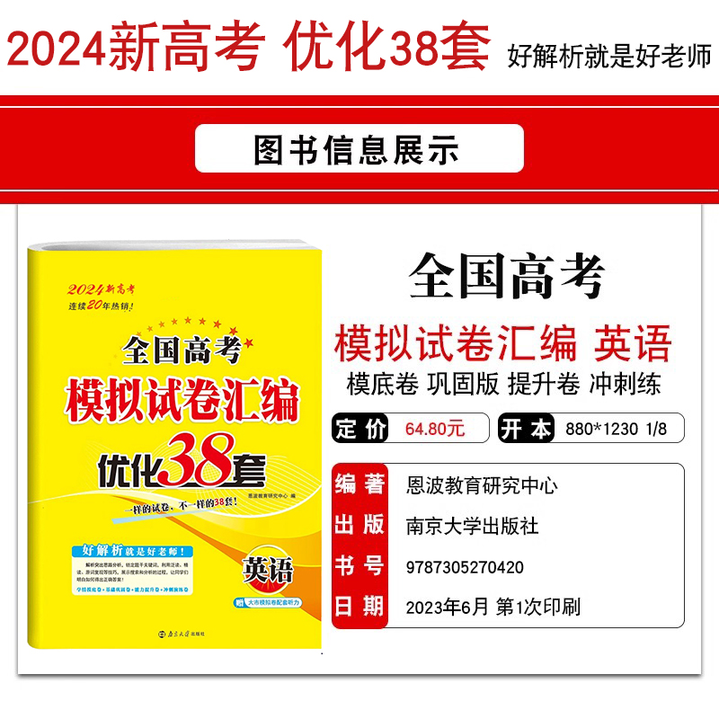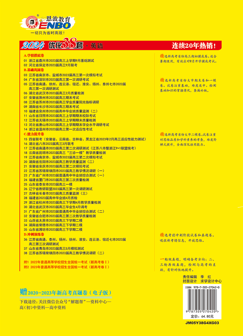 现货恩波教育2024新高考英语江苏高考模拟试卷汇编优化38 高中总复习模拟卷附赠答案解析9787305187353 2套高一高二高三高考用书