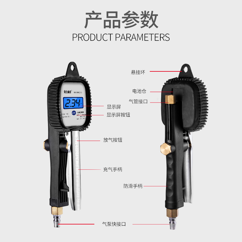 气压表胎压表高精度带充气胎压计汽车轮胎压监测器数显加气打气枪