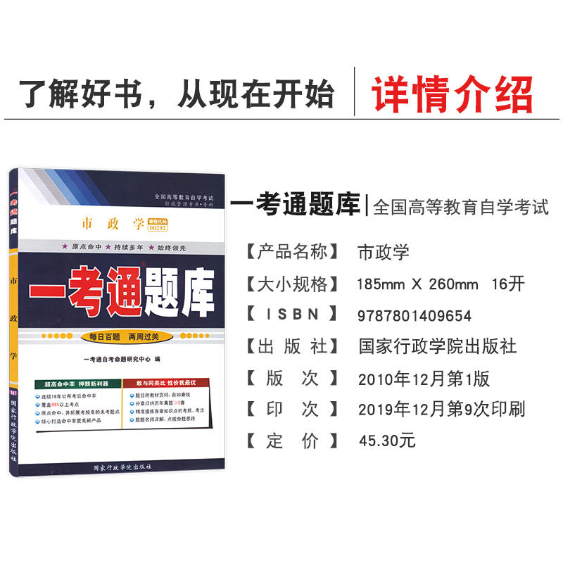 0292市政学一考通题库 全新版 配套2010年版 备战2024 社 自考辅导00292 孙亚忠高等教育出版 臻博图书自考书店 正版