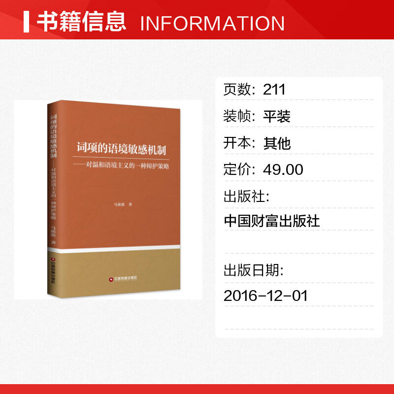 图书籍 社 一种辩护策略 图书馆学 档案学文教 著 对温和语境主义 马欣欣 中国财富出版 词项 新华书店正版 语境敏感机制