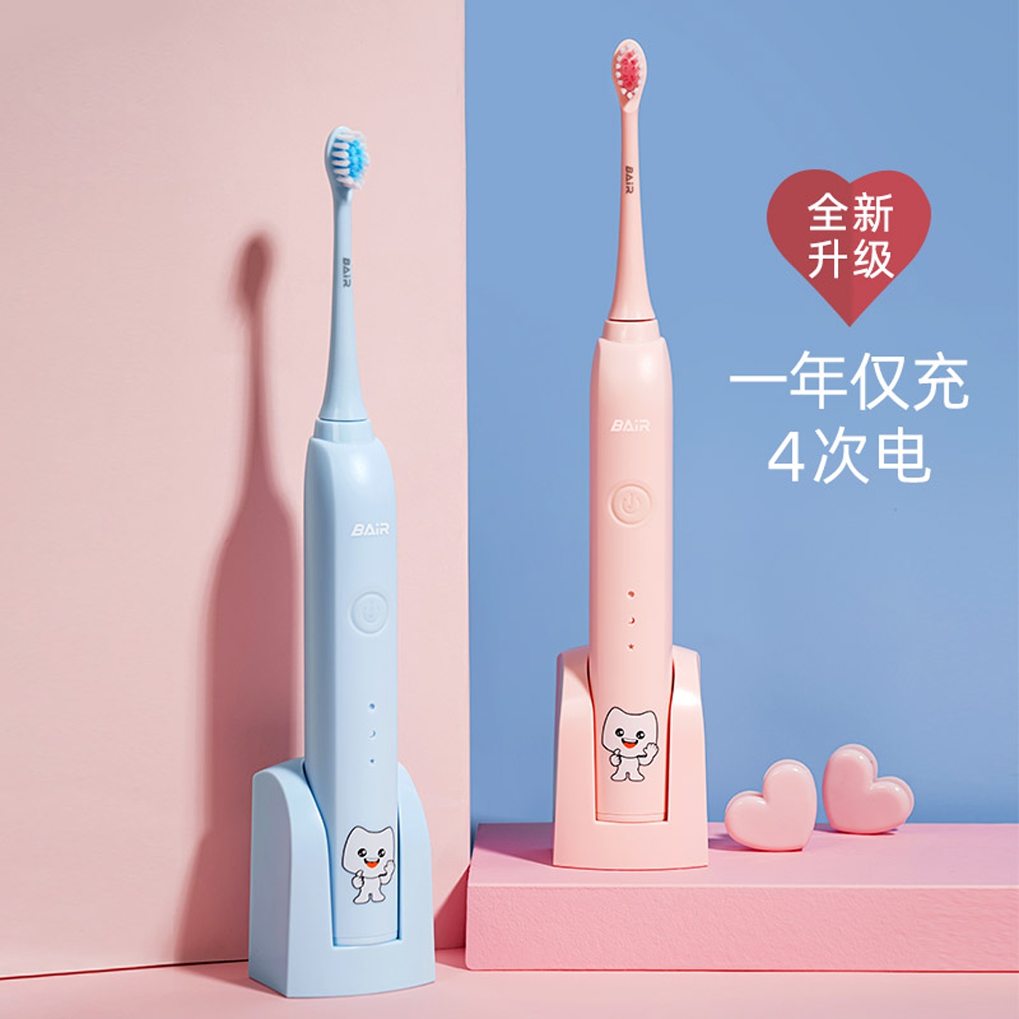 拜尔儿童电动牙刷充电式 男女孩子3到6到12岁以上宝宝自动声波软毛