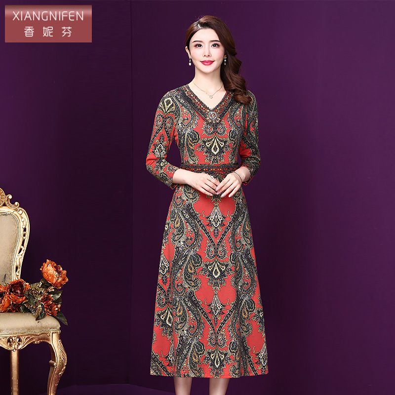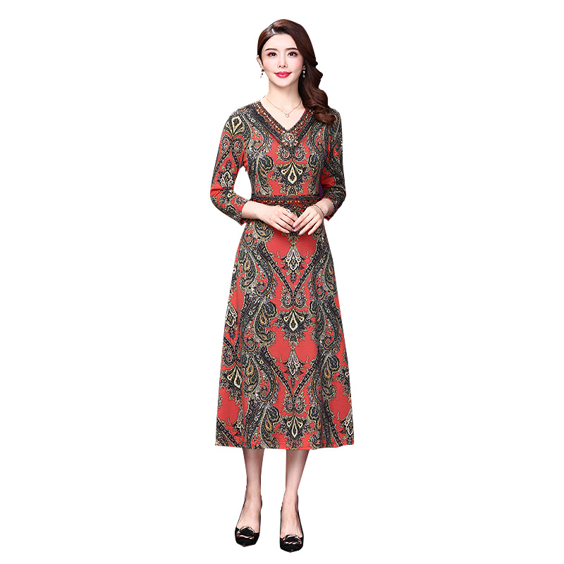 Vero 含棉捏褶老钱风中长裙32537D011 Moda连衣裙女2025秋冬新款