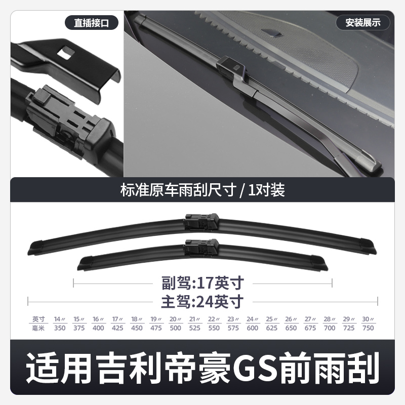 适用吉利帝豪GS雨刮器原装 17汽车18无骨19前后雨刷片 原厂胶条16款