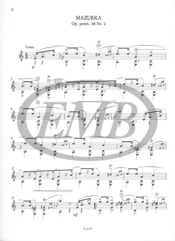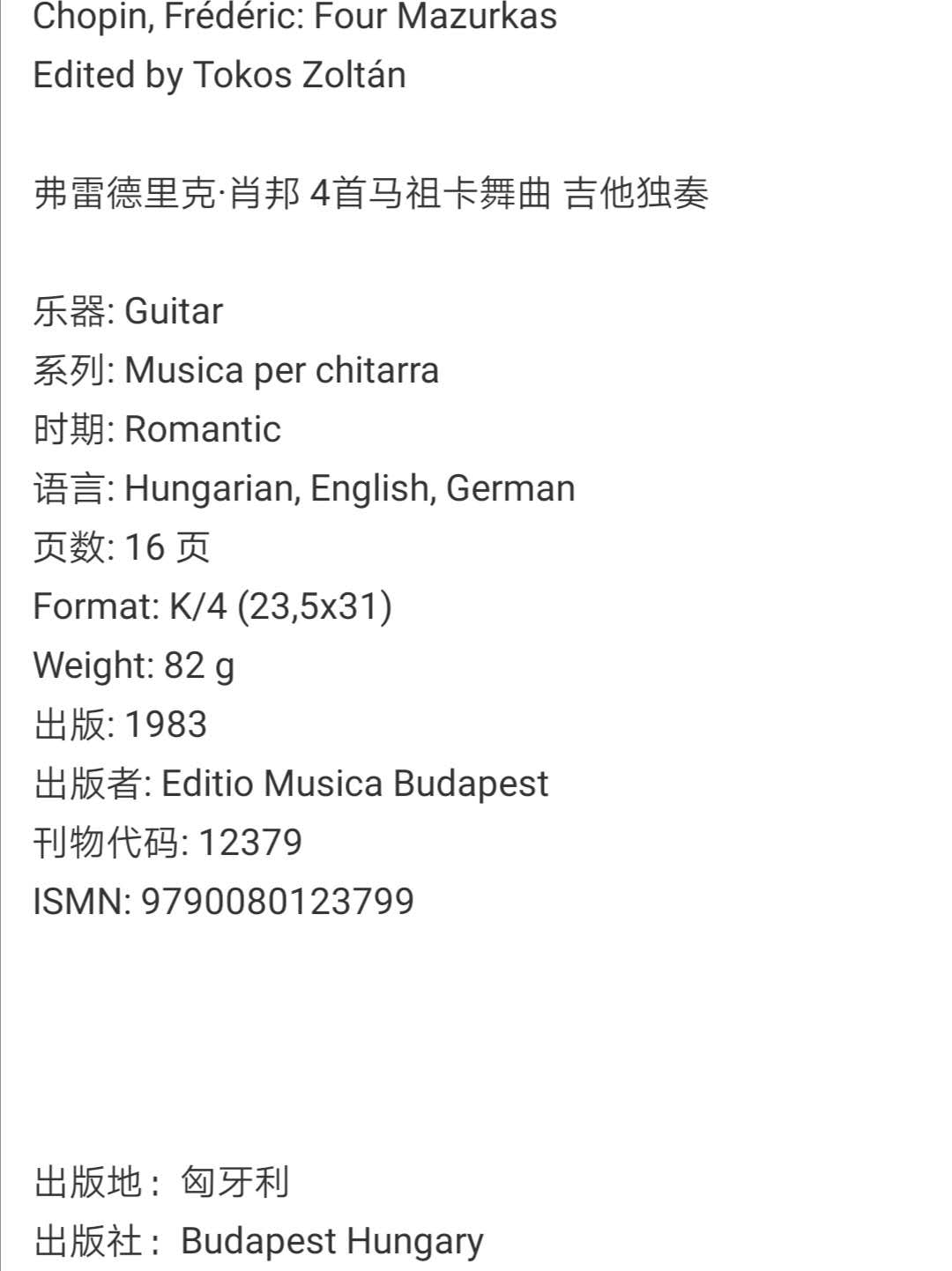 Frederic Z12379 吉他独奏 Guitar Mazurkas Four Chopin 乐谱书 布达佩斯进口原版 4首玛祖卡舞曲 肖邦