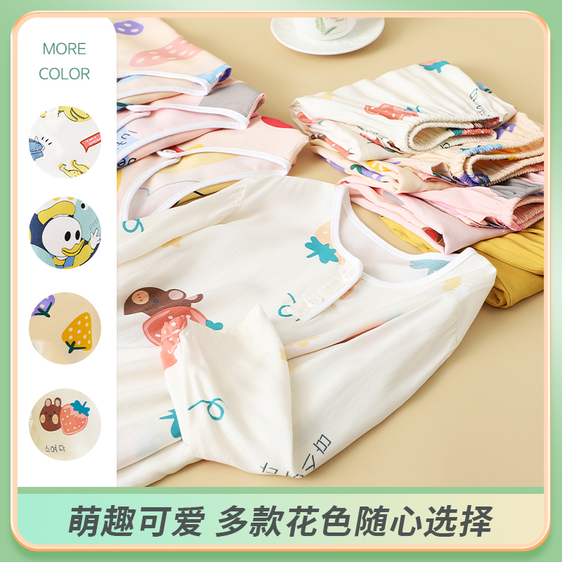 套装 男童棉绸长袖 孩宝宝绵绸大童空调家居服 女童薄款 儿童睡衣夏季