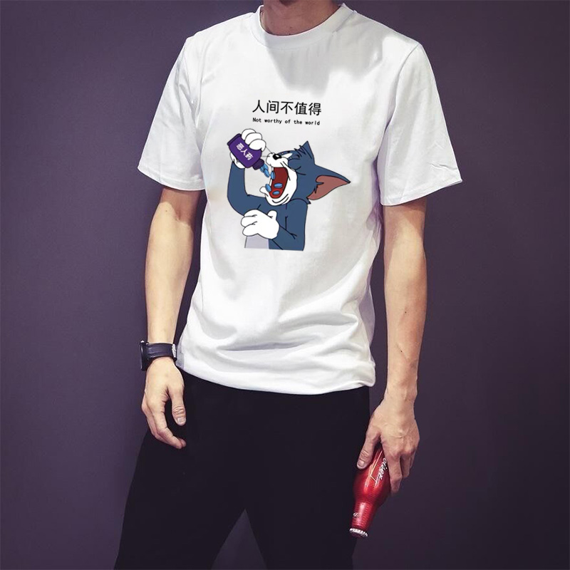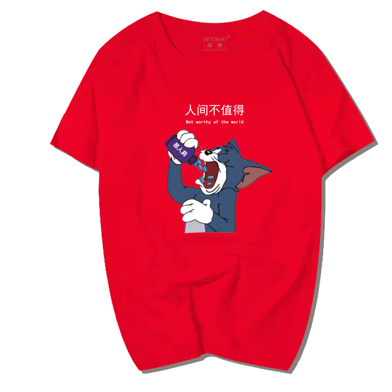 宽松半截袖 男女情侣装 潮 猫和老鼠T恤汤姆杰瑞夏季 人间不值得短袖