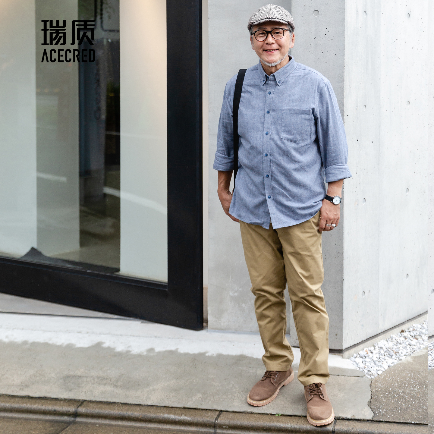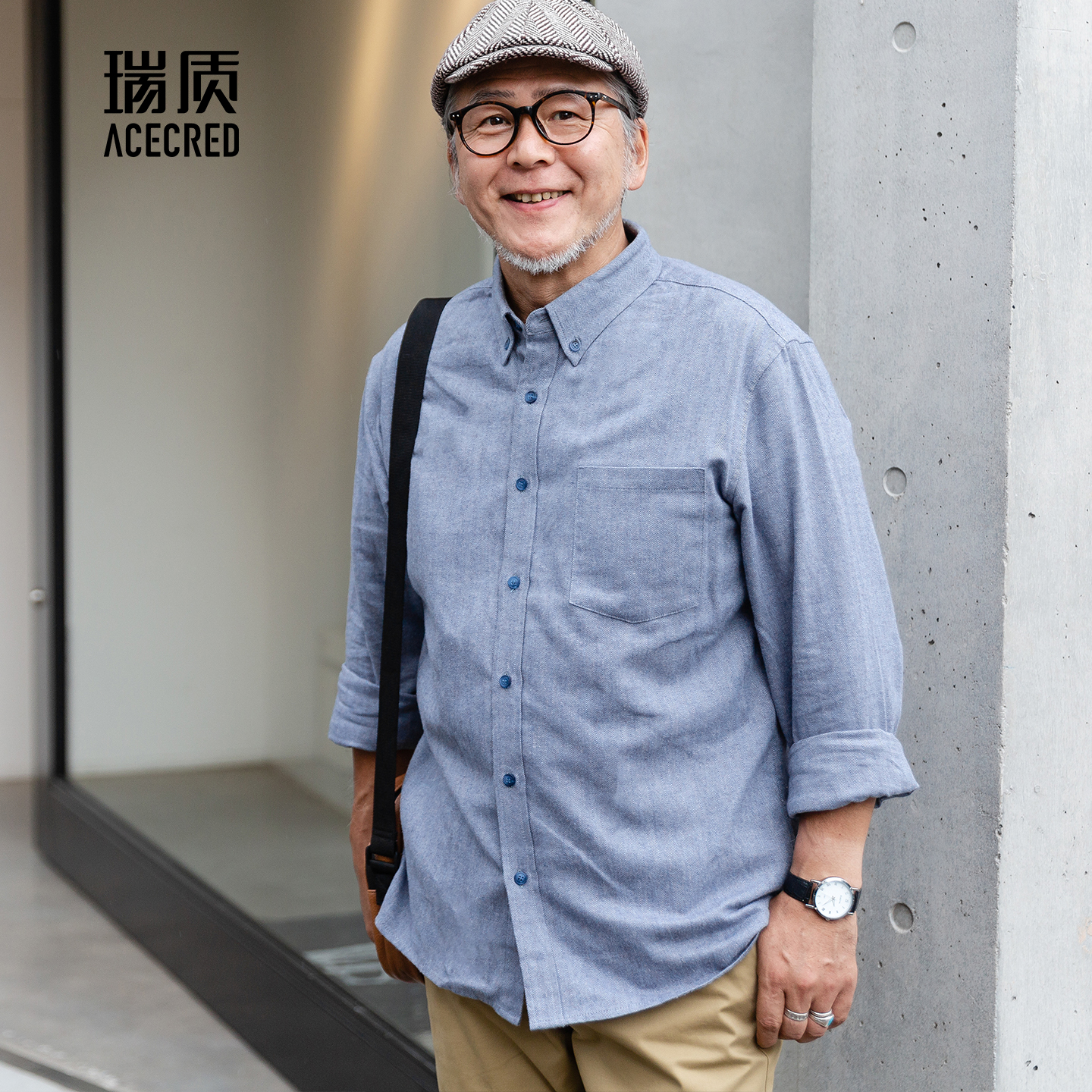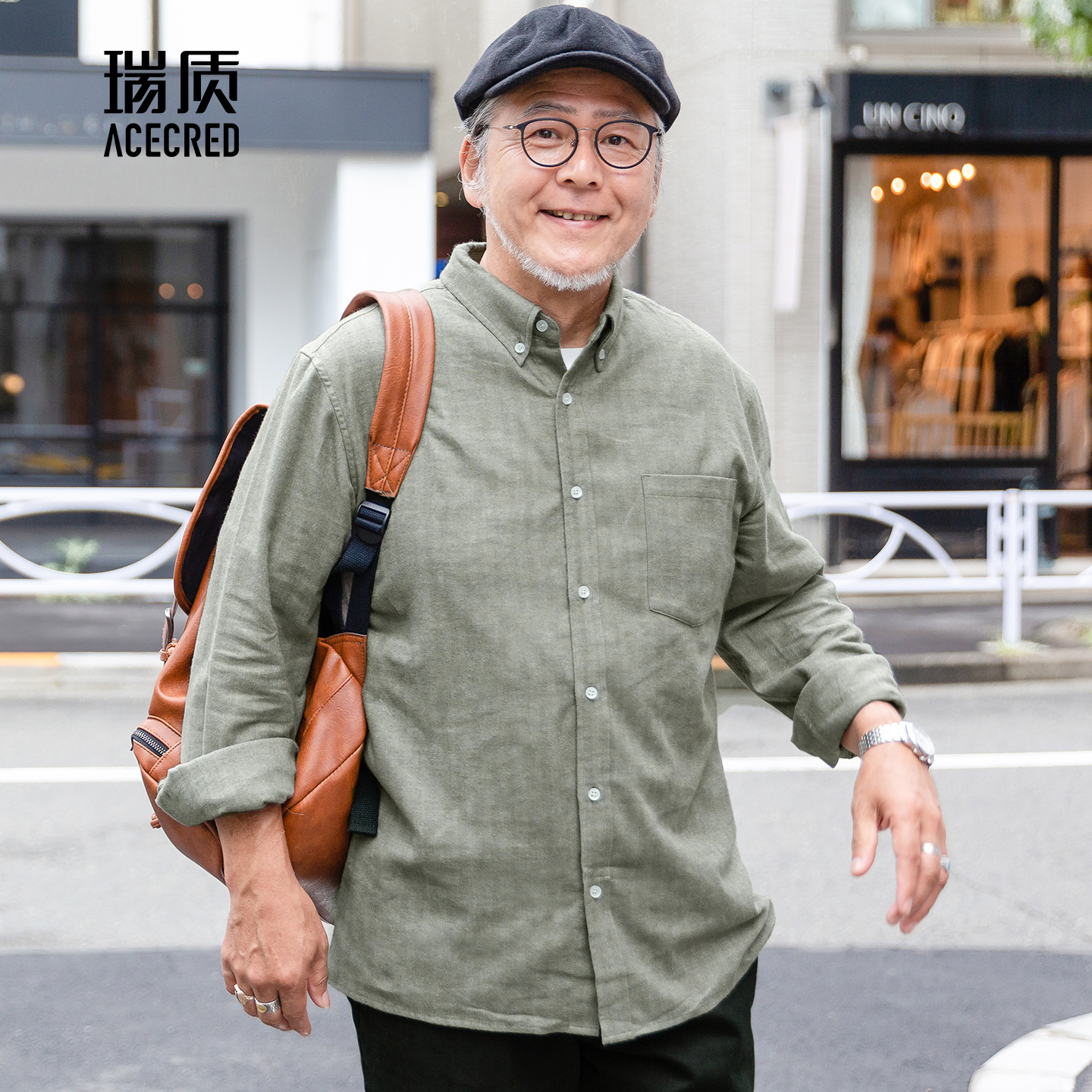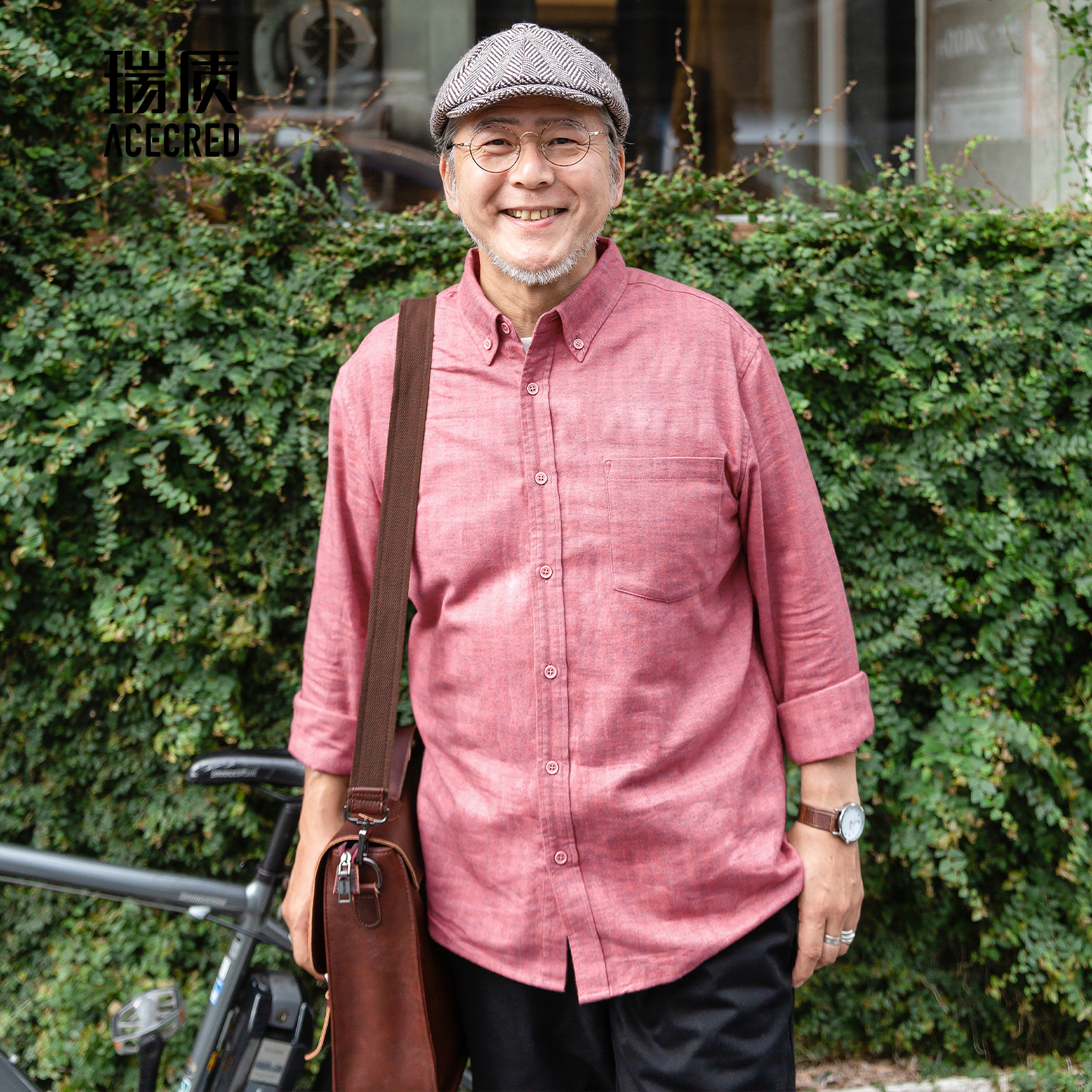 衬衣中年老爸爷爷寸衫 爸爸纯棉长袖 秋装 中老年人男装 老人衣服 衬衫