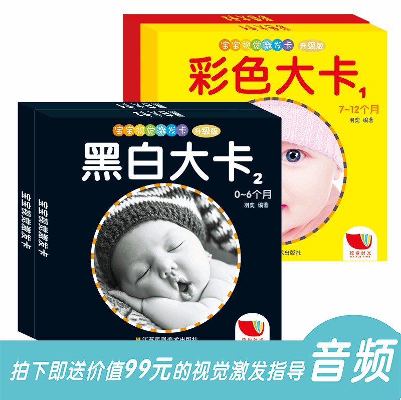 启蒙书识图卡片颜色识别 3岁 6个月新生儿视觉激发大卡 儿童图片书初生幼儿视力训练书 早教黑白卡彩色卡闪卡0 4盒婴儿识图卡片