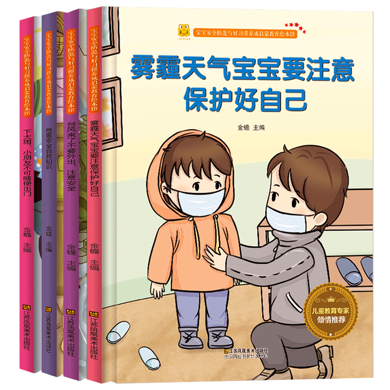 书籍精装 安全绘本4册 绘本3 安全防范与好习惯培养精装 幼儿自我地震台风自救意识启蒙小绘本 6岁硬壳硬皮绘本故事阅读书 幼儿园正版