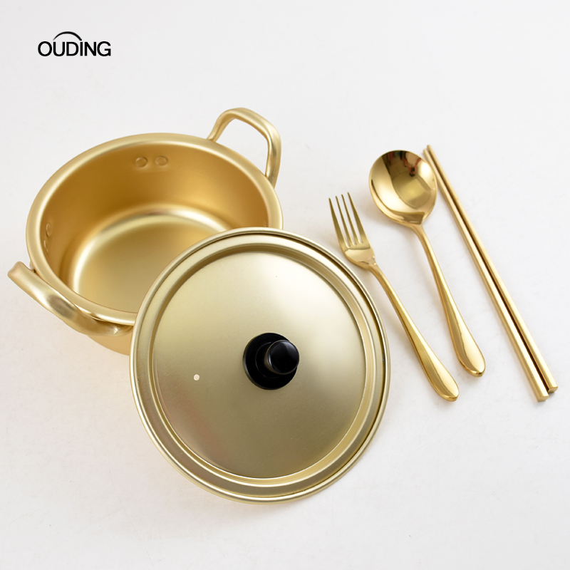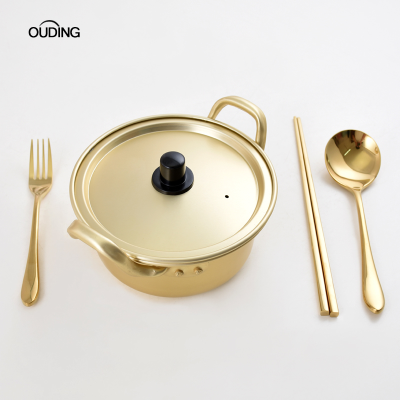酒店餐厅韩式 泡面锅韩国拉面锅网红煮方便面小煮锅黄铝小食堂家用