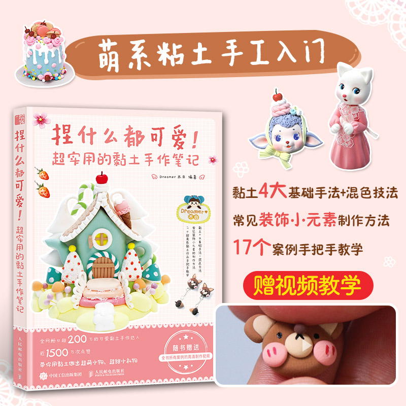 植物动物美食 超轻粘土diy 捏什么都可爱 万物可爱 零基础黏土手工制作教程 黏土手作笔记 2册 超实用 黏土画 入门书 视频教学