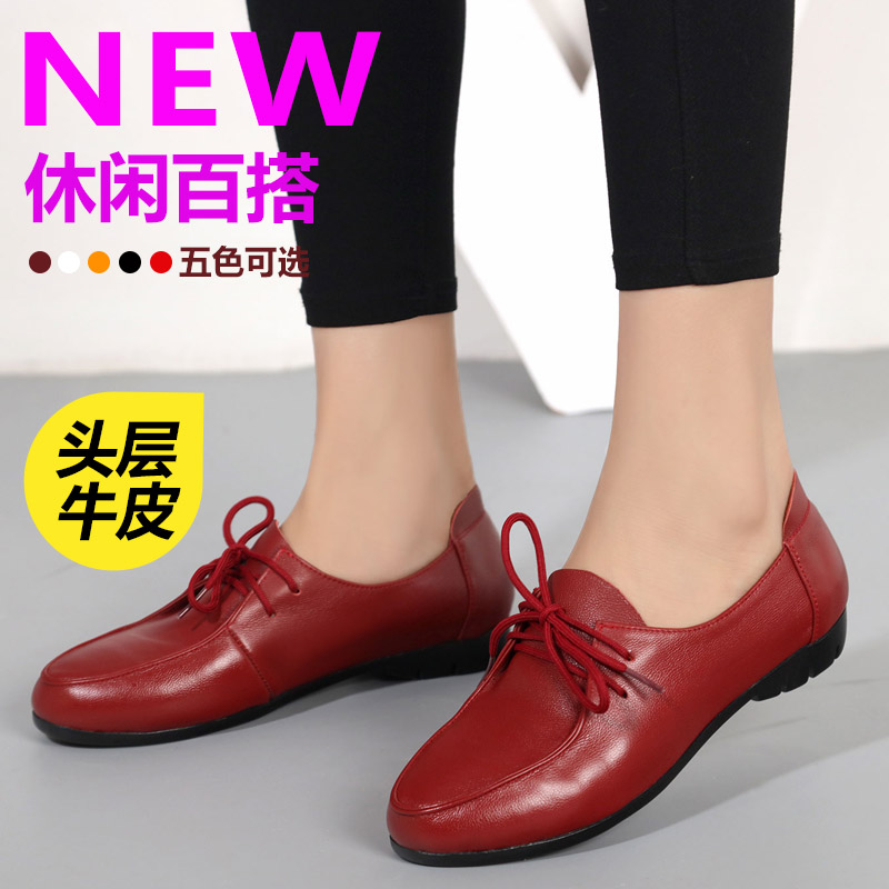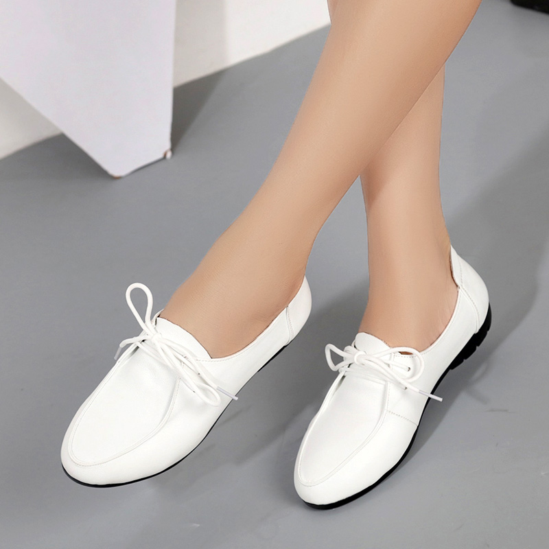 女鞋 春季 子休闲单鞋 平底鞋 真皮百搭豆豆鞋 大码 小白鞋 新款 皮鞋 女式