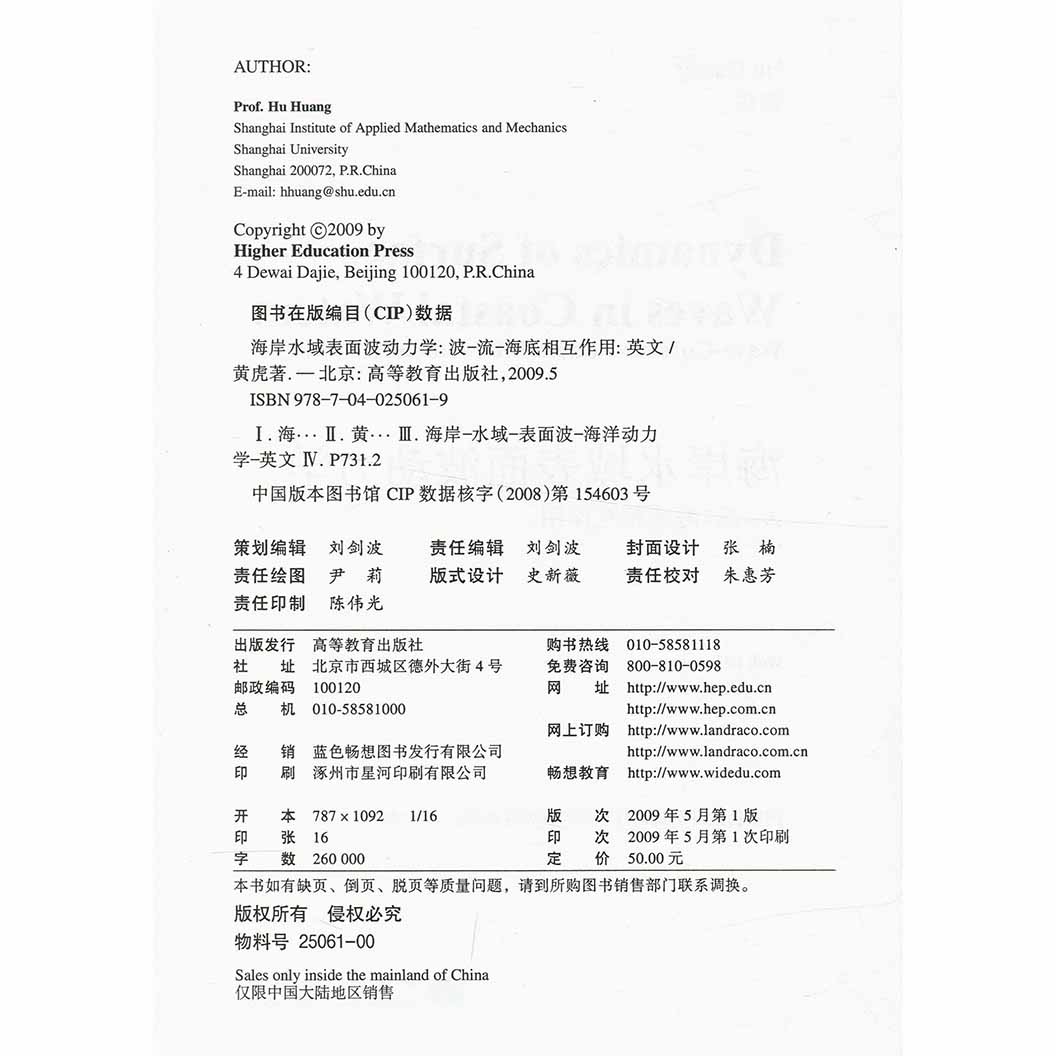 地质学 社 流 高等教育出版 测绘 资环 黄虎 英文版 海底相互作用 波 海岸水域表面波动力学