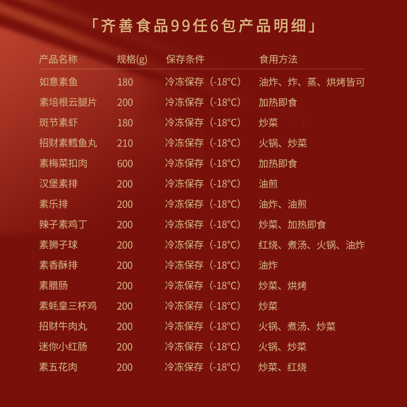 齐善素食纯素仿荤素鱼素虾素排素肠寺庙斋菜 任选6件 冷冻 99元