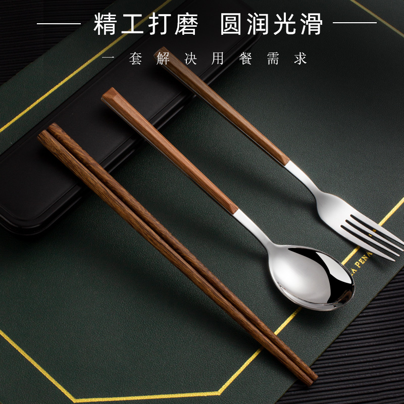 不锈钢筷子勺子套装 餐具户外旅行折叠上班族筷子盒 学生专用便携式
