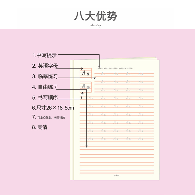 英语字帖26个英文字母练字本人教版 初学者宝宝幼儿园学前班启蒙意大利斜体英文大写小写速成练习写字铅笔描红本手写体临摹练字帖贴