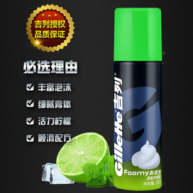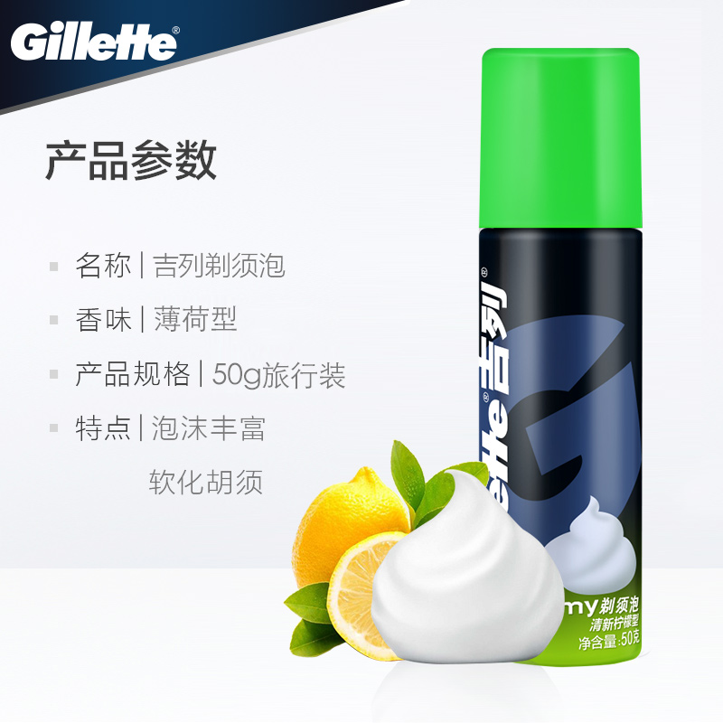 吉列剃须泡沫清新柠檬型男士 刮胡泡剃须膏软化胡须泡50g两瓶装