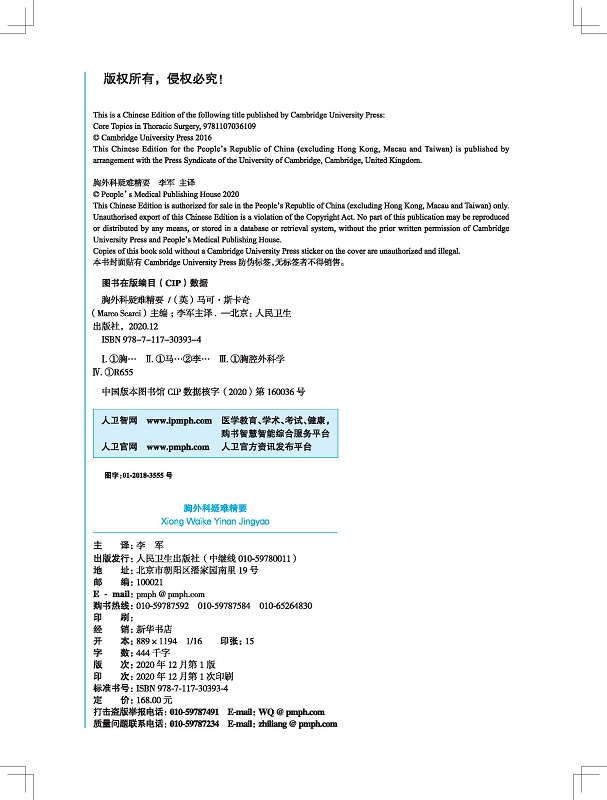 人民卫生出版 9787117303934 胸外科手术实践中遇到 腔镜检查 瘘道 要目 主译 常见难点和经典 社 胸外科疑难精要 感染 李军