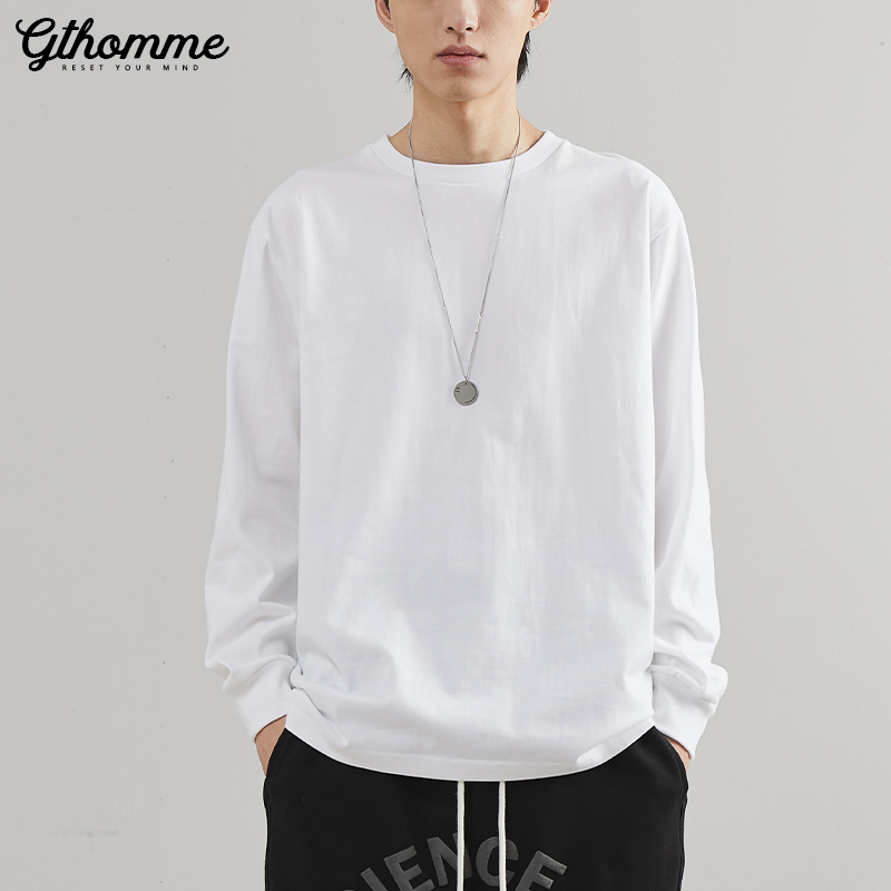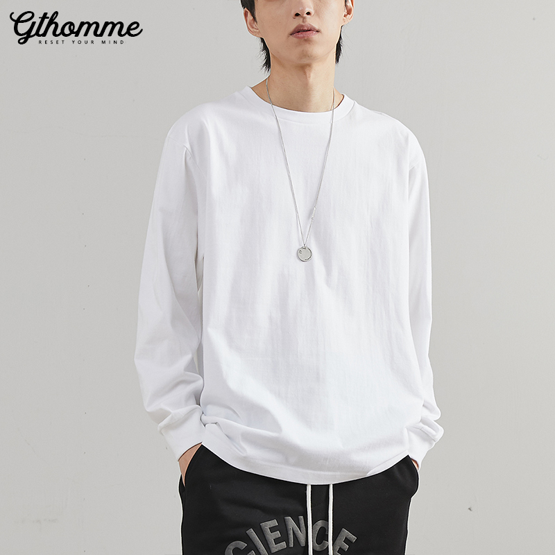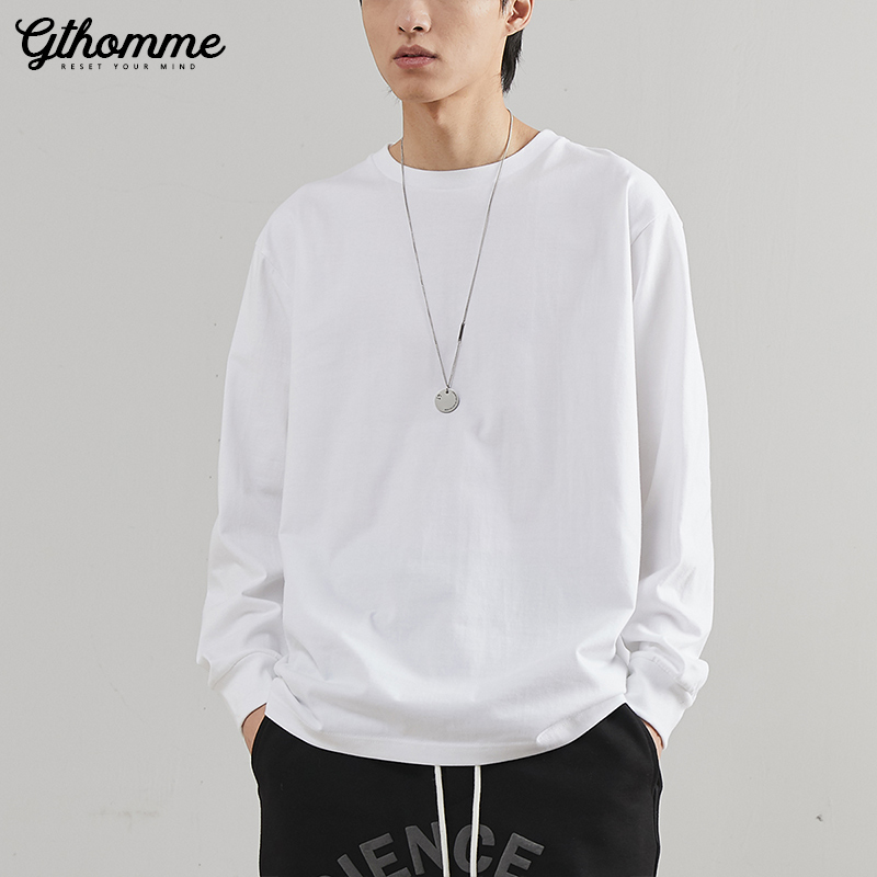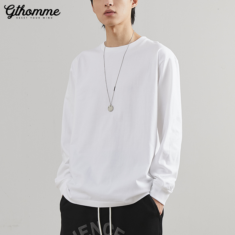 潮流ins百搭体恤白色衣服打底衫 T恤圆领纯色韩版 长袖 2025春秋男士