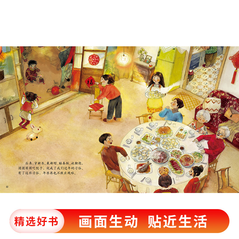 年兽来了中华传统经典 6周岁中华传统文化春节新年过年绘本启蒙认知图画故事书大字大开本一年级课外阅读神话故事 故事绘本儿童3
