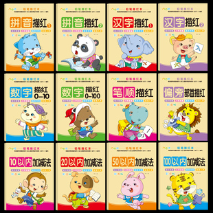 儿童数字描红本幼儿园初学者全套1 6岁幼儿写字入门学前班幼小衔接笔画笔顺汉字拼音加减法练习册 10练字帖拼音练习贴写田字格本3