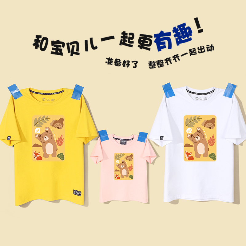 一家三口潮流夏季 短袖 纯棉2025新款 四口全家装 t恤 时尚 小熊亲子装