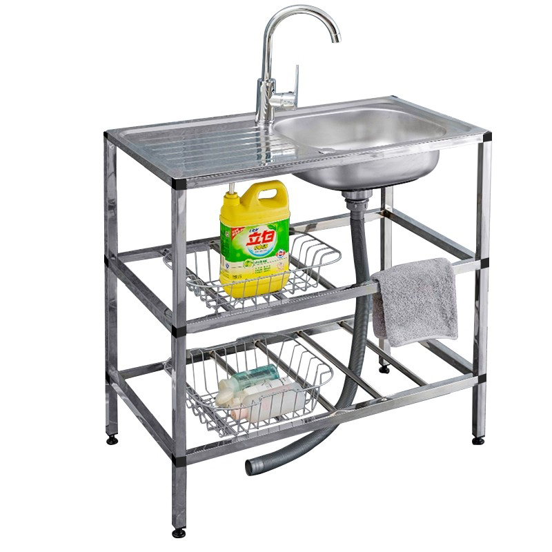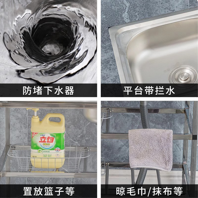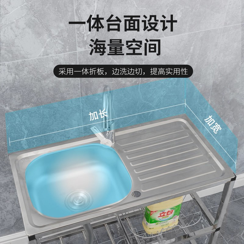 厨房不锈钢水槽带支架移动简易洗碗槽免打孔淘菜盆带平台洗菜池架