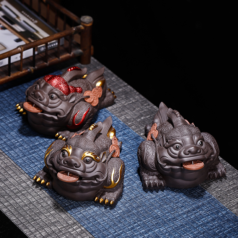 紫砂茶宠摆件可养鸿运金蟾招财镇宅三足金蟾手工蟾蜍茶玩茶台配件
