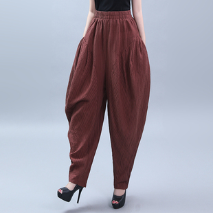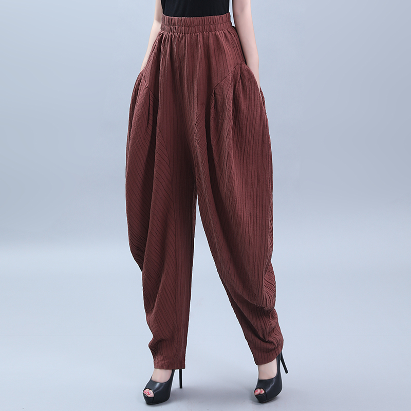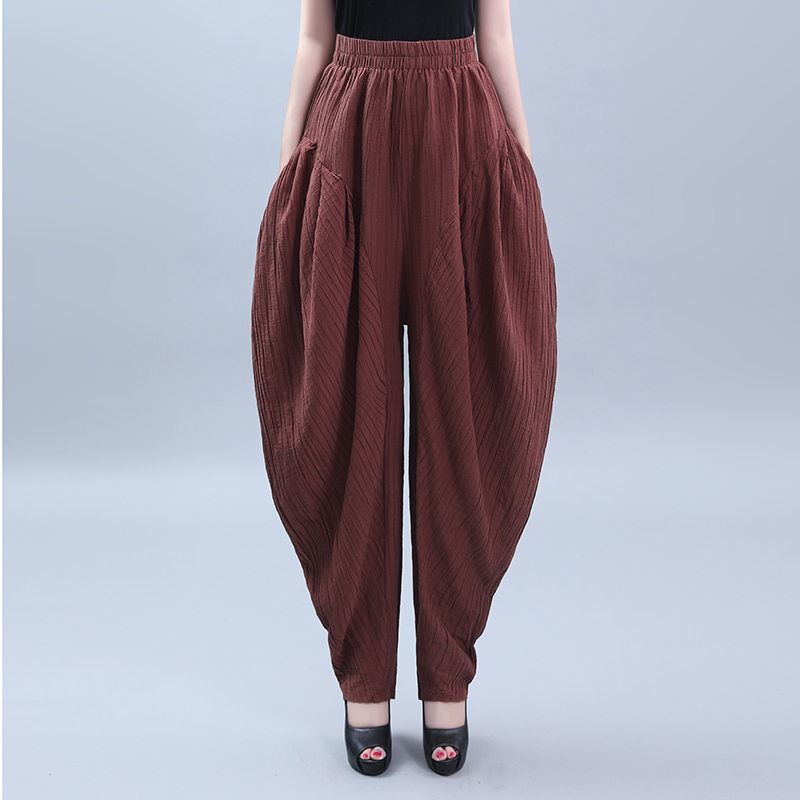 秋季 跳舞束脚裤 新款 垮裤 子 高腰垂感棉麻阔腿吊档裤 竺麻女士灯笼裤