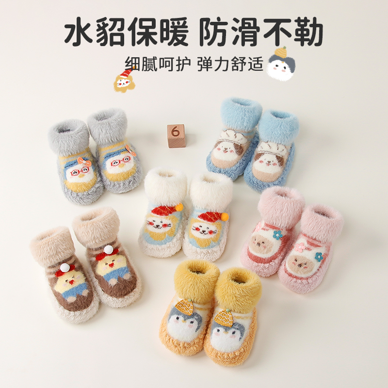 宝宝鞋 袜幼童软底厚袜套 袜冬中筒婴儿袜子加绒加厚软底室内防滑鞋