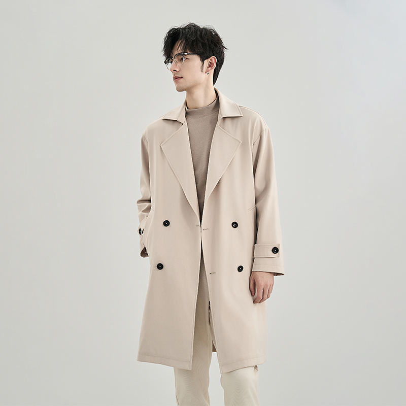 大衣潮 外套高级感宽松猎装 w2x春秋季 高密加捻细斜纹风衣男中长款