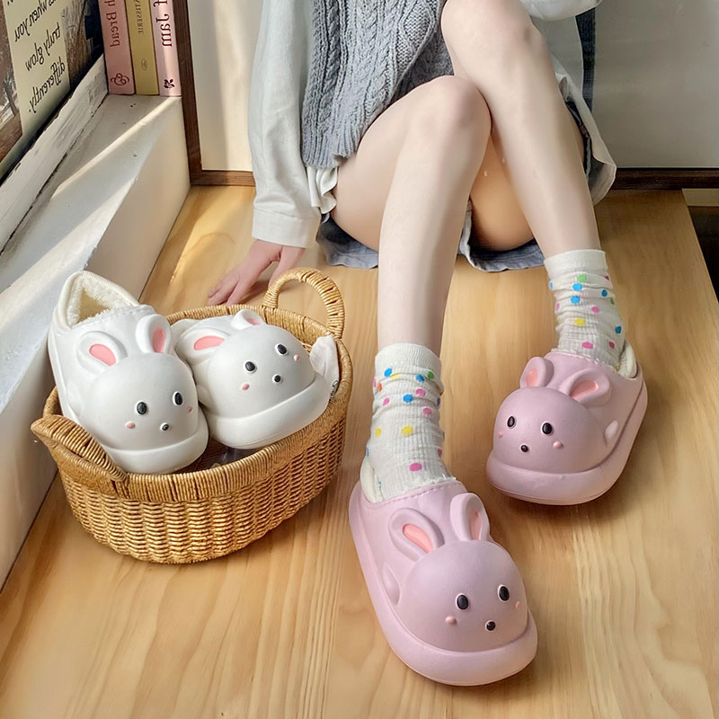 外穿防水室内家居防滑包跟棉鞋 2024新款 女士冬季 可爱小兔子棉拖鞋