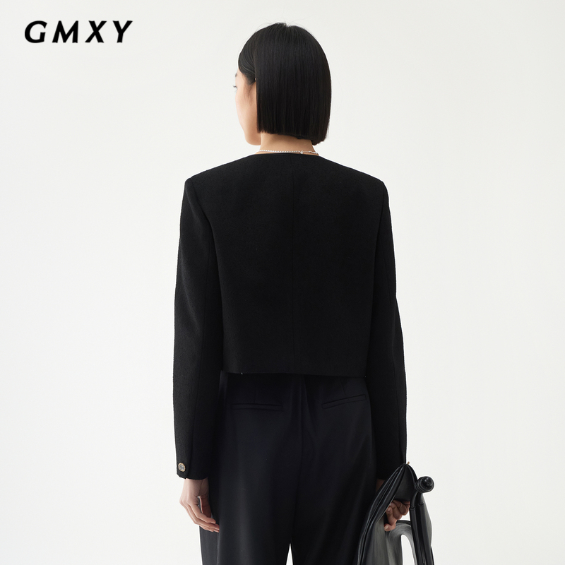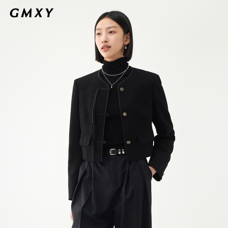 古木夕羊秋季 纯色气质圆领外套女GS450072003 国风新中式