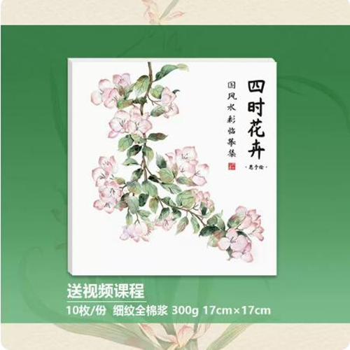 自来水笔 全棉浆 官方原版 水彩涂色画册 国风水彩临摹线稿集 赠视频教程 36色固体水彩颜料 四时花卉 全新当天发货 当天发