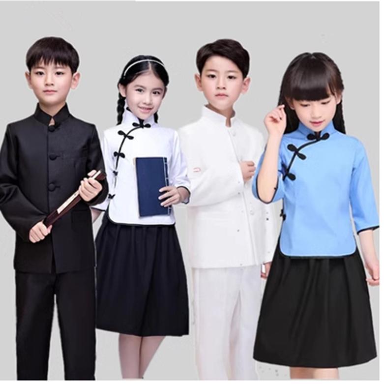 我 一条大河合唱演出服儿童复古民国风马褂 家园梦情景剧表演服装