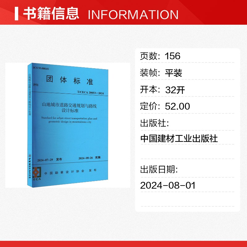 专业科技 图书籍 20053 建筑 水利 中国勘察设计协会 CECA 2024 新华书店正版 山地城市道路交通规划与路线设计标准 新