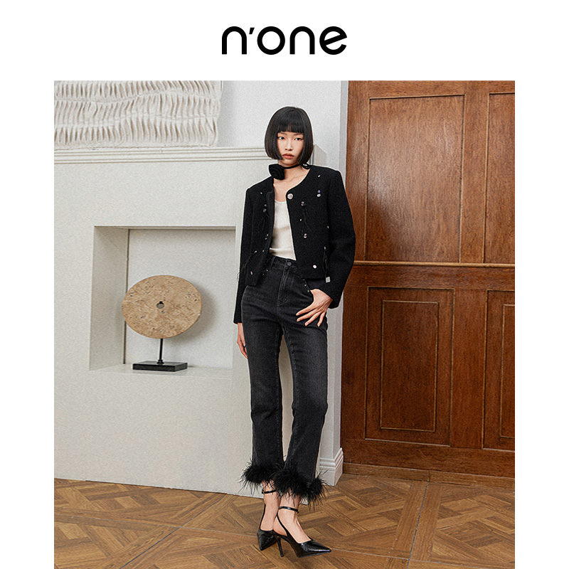 羽毛装 none 女冬季 财阀千金风深灰色合体弹力牛仔裤 饰 新款