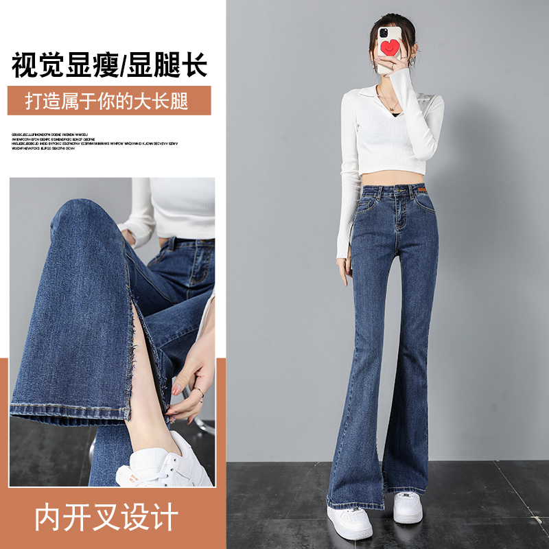 女春秋2025新款 九分微喇牛仔裤 显腿长蓝色弹力喇叭裤 品牌清仓