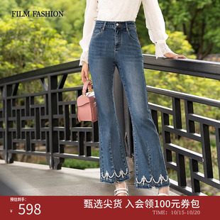 复古做旧阔腿显瘦直筒牛仔裤 新款 2025年秋季 热风女士直筒牛仔裤